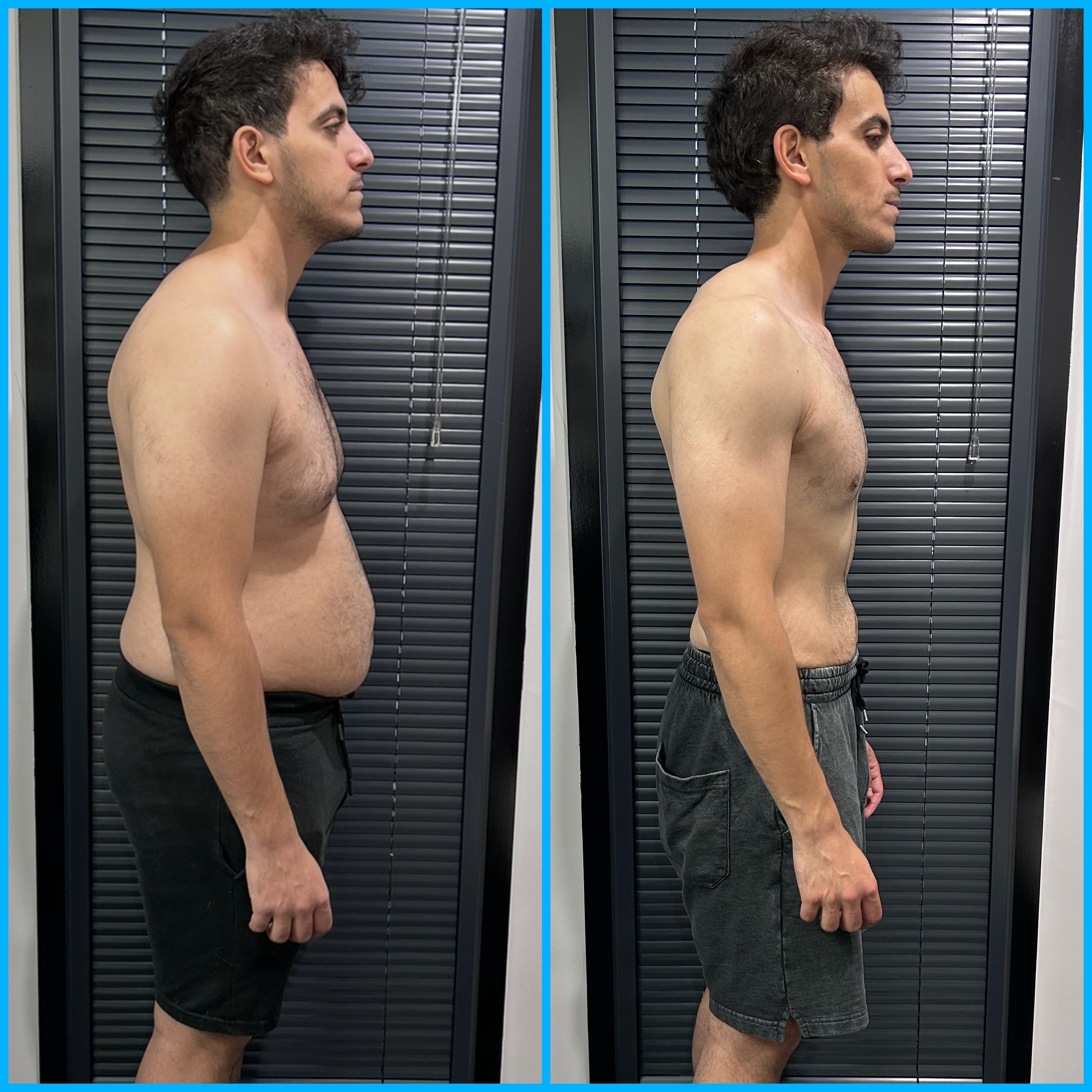 From the outset, our focus wasn’t perfection. It was structure, accountability, and consistency through personalised one-to-one coaching. We built a strength training and lifestyle approach that worked around Husein’s job, not against it. Training sessions were adapted to his shifts, recovery was prioritised, and nutrition habits were made sustainable rather than restrictive.